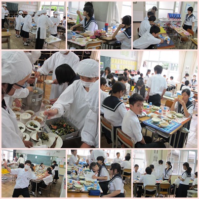 給食準備から10分ほどたったところです。早い学級とやや時間がかかっている学級がありました。PS.2年生の様子です。