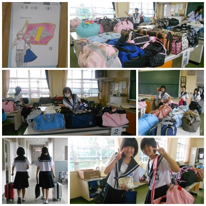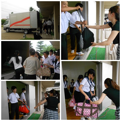うきうきしながら大きな荷物を持って来る生徒たちの笑顔がはじけています。