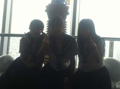 スカイツリーで記念写真。影で暗くなってしまいましたが、気分は晴れやかです\(^o^)/