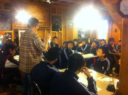 サイクリングはあいにくの天候でしたので、サンドブラストに変更となりました。説明を聞いているところです。