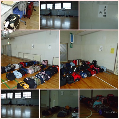 荷物が到着しました。体育館で活動していた卓球部・バスケットボール部・バレーボール部・剣道部の生徒で、すべてを下ろし、学級毎に並べました。ありがとうございました。