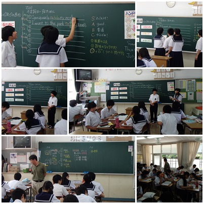 英語の授業では、チームに分かれて発表していました。いかに、わかりやすく伝えるかもポイントですね。社会の授業では、江戸幕府について、なぜ、260年も続いたのかを資料から読み取り、発表していました。