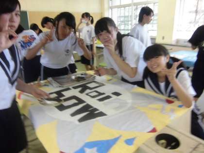 ※写真は体育大会で使う、学級旗の制作場面です。
