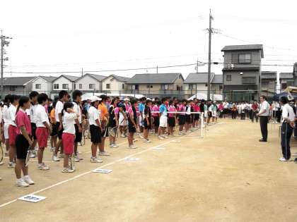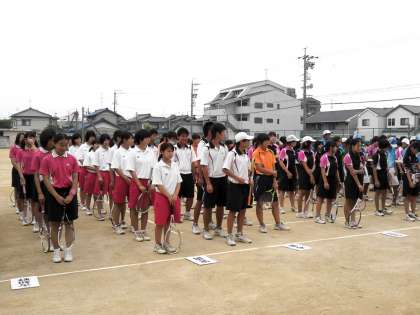 ソフトテニスの尾北支所大会の開会式が行われました。