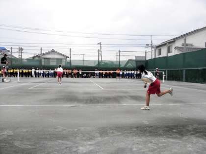 三浦・西岡組は、粘り強いテニスで、強豪岩倉中を4×2で破り、ベスト8になりました。