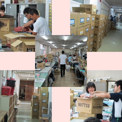 本日の終業式後から、南館の工事がスタートします。まずは、南館にある荷物をすべて移動させます。職員室前廊下は、段ボールが山積みの状態です。