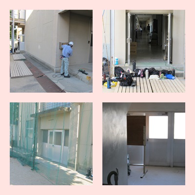 ポストを北館西の壁に設置しました。また、みなさんの職員室等の入り口、玄関は、北館西(体育館通路に続く所)とします。下の2枚については、職員の玄関とします。