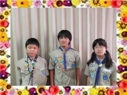 本校のボーイスカウト隊員の写真左から1年生の酒向真琉君、1年生の長屋琉我君、2年生の常川七海さんです。7月30日(火)から8月8日(木)まで山口県きらら浜で16NJ訓練プログラム(何じゃ?)を受けに出かけます。