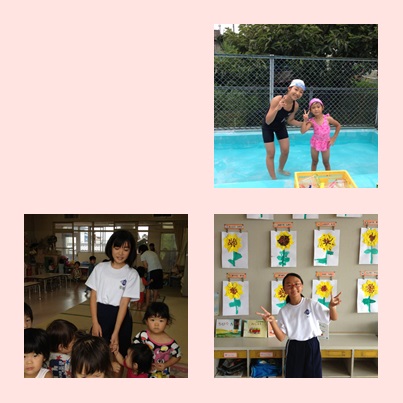 1年生の田上さん・田村さん、2年生の鬼頭さん・大竹さんが、宮田東保育園で楽しく園児と活動しています。頑張って下さい。