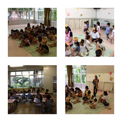 藤里保育園では、2年生の石原さん、下山さん、加藤さんが楽しく活動していました。