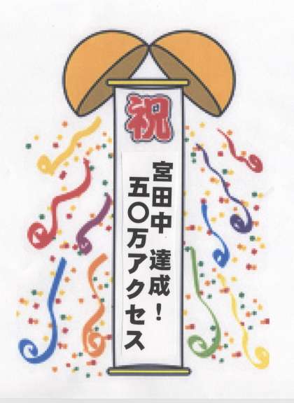 宮田中学校のHP総アクセス数が記念すべき50万に達しました。これもひとえに、応援して頂いた保護者の皆様、生徒諸君、教育関係者の皆様のお陰です。本当にありがとうございました。