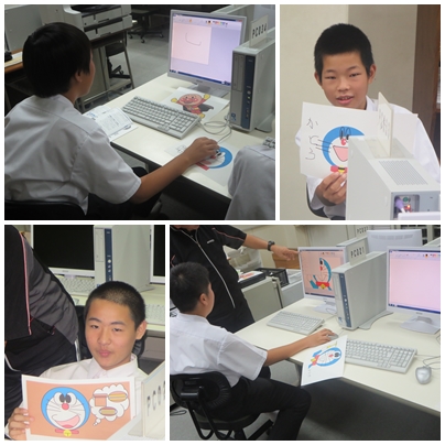 パソコンを使って絵を描くことに挑戦しました。いろんなツールの使い方の説明を聞き、すぐに使いこなしていました。キャラクターは同じでも一人一人作品に違いがあり、どの生徒もうまく作ることができていました。