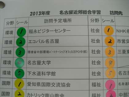 来月は名古屋へ分散学習を行いに行きます。写真は掲示です。今から楽しみですね、下調べをしっかり行いましょう。