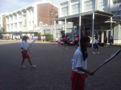 今日は滝中学校で個人戦が行われます。選手たちは入念にウォーミングアップ中です。開会式は8時半からです。応援よろしくお願いします!