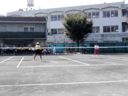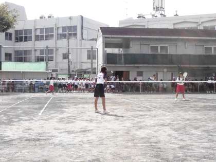 滝中学校で、秋季ソフトテニス大会個人戦が行われています。