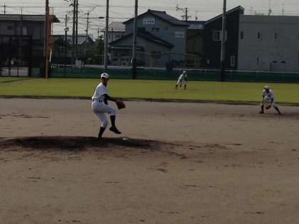 一回裏、ピッチャー伊藤君、緊張からか四球二人をだすも、なんとかおさえ0点に。二回表は宮田中学校は0点に。
