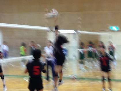 対江南西部中学戦、2セット目は前半リード許すも、後半逆転しセットを取り、勝ちました。レシーブがよくなたのもわかりました。次は江南北部と全勝同士の戦いです。