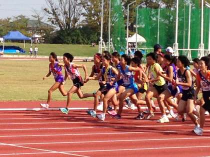 女子1区スタートしました。宮田さんが7位でグランドを出ていきました。元山さん、小松さんも頑張ってください。