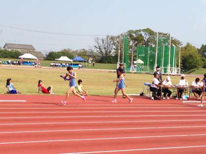 2区森さんが帰ってきました。前を縮め5位です。団子になっています。3区は藤井さんです。