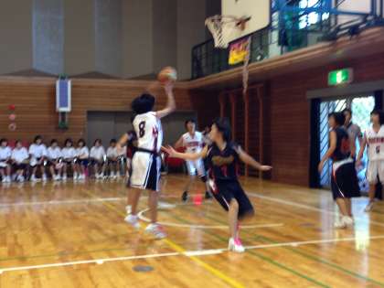 第一クオーター8対16で終えました。佐々木梓さん、すごいです!確実にシュートを決めていきます。