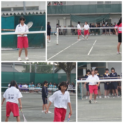 滝中学校にて団体戦が行われ、大口中学校との初戦に2−1で勝利しました。滝中学校との二回戦で惜しくも敗退しましたが、大変内容の濃い、粘り強いテニスができました。今回の試合で見つかった課題を意識し、明日からの練習も頑張りましょう。一分一秒を大切に!頑張れ、宮中ソフトテニス部!!