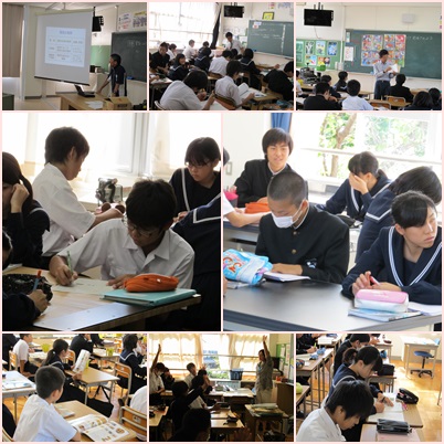 吹き返しの風が、窓を叩いたり、木々を揺らしたりして、いろいろな音を作り出しています。そんな中でも、集中して授業に取り組む生徒の姿がありました。