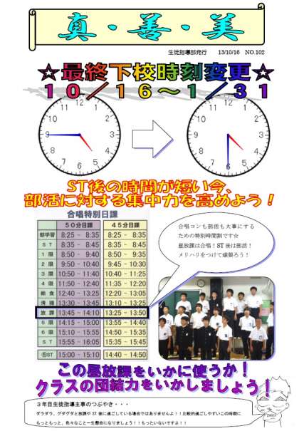 部活に合唱コンに、やること満載!時間を上手に使いましょう!