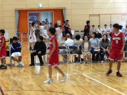 秋季合同練習会バスケットボール男子の対岩倉中戦の試合はまさに1点を争う好勝負となりました。小学校時代から知っているキャップテンの住藤玄太君や加藤遊君、小学校時代には想像もできないくらいたくましくなりました。その二人から放たれるシュートのリバウンドが取れる成田大門。大きさが魅力的でした。また時に強引に入り込んでいくパワープレーは望むところです。試合中あいさつしてくれた岡地架君、トップで頑張っていました。みんなに指示を与えられるまでになってください。試合は本当に惜しかったです・・・。