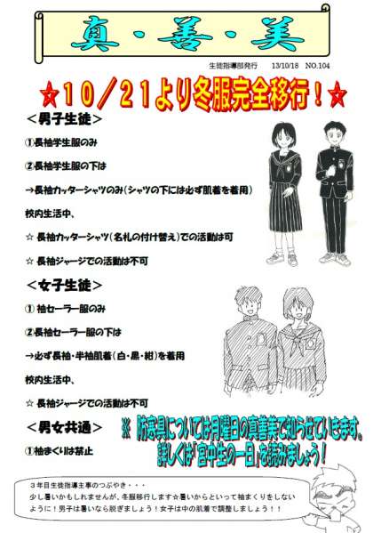 ようやく秋らしい気候になってきました☆服装を整えて体調管理に気をつけましょう!