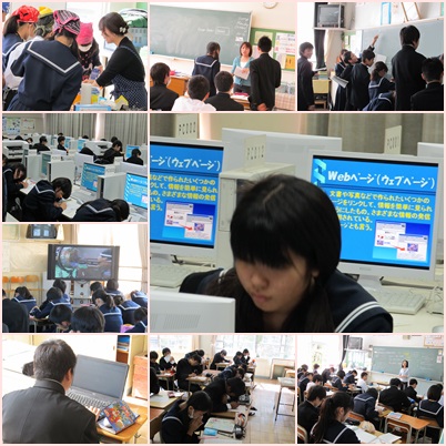 コンピュータ、大型モニター、大きな提示物などを使い、わかりやすい授業を展開していました。