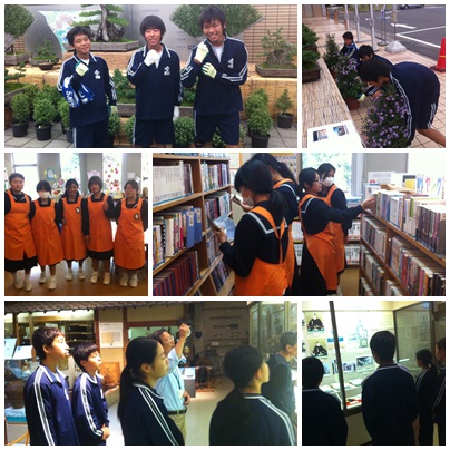 本日、最後の職場体験の様子です。江南市役所 産業振興課、江南市立図書館、歴史民俗資料館の様子と帰着チェック時の様子です。