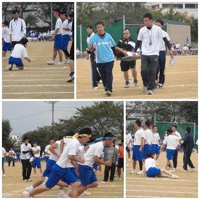 女子400mと男子800mは特に感動しました。すごい、抜きつ抜かれつのレースが続き、ゴールした後、倒れ込むシーンが何回もよく見かけました。(写真)体育祭で何がそこまで走らせるのでしょうか。この学校の何事も全力で取り組むという姿勢がよく伝わってきました。
