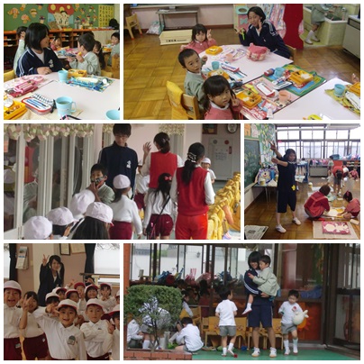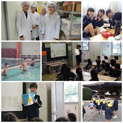 江南厚生病院、なかむらファミリークリニック、桃太郎スイミングスクール、藤里保育園、江南幼稚園の様子です。この職場体験という機会を十分に使って、学習しています。