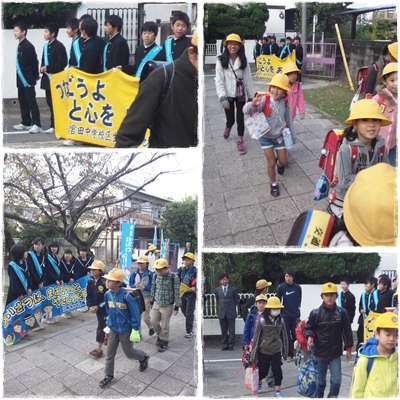 その素晴らしい通学班の伝統を作り出した、藤里小OBの生徒と一緒にあいさつ運動を行うことができて、嬉しかったです。