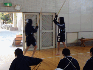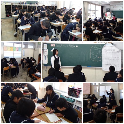 数学の授業では、班に分かれて問題の教え合いをしていました。体育の授業では、剣道とダンスの授業をしていました。剣道部の生徒のお手本は、迫力があり、かっこよかったです。