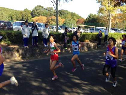 宮田さん第二グループです。少し出遅れています。、古知野中、先頭集団にいます。
