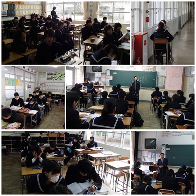 朝の時間は、担任先生から話を聞いていました。清掃のマニュアルのビデオを見たので、今日からより上手にできるようになると良いですね。テスト週間が始まりました。気合いの入っている生徒も授業で見られます。がんばれ!2年生!!