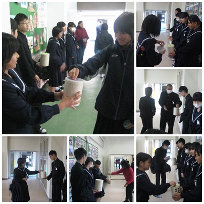 今朝もボランティア委員会の生徒が募金活動を行ってくれました。今日は昨日より多くの人が募金をしてくれました。ありがとうございます。残り2日間もよろしくお願いします。