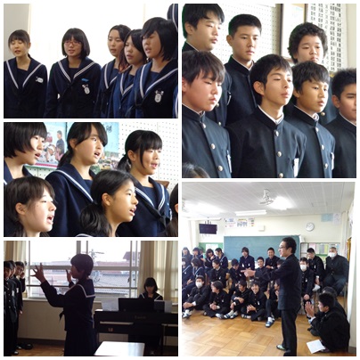 昨日の昼放課に1年1組の皆さんが、3年3組に合唱交流に来てくれました。