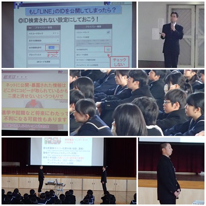 今日の6時間目に、愛知県警本部サイバー犯罪対策課の杉浦様、後田様をお招きして、ネットに関するトラブルや事件、それを防ぐ方法を教えていただきました。最近話題にあがる、LINEの危険な面も教えていただきました。情報の世界は、次々に発展していくので、しっかりとした知識を身に付けて、自分自身を守る行動をしていきたいですね。