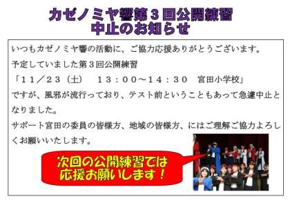 第3回公開練習中止の連絡(カゼノミヤ響)