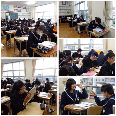 黙々と復習したり、お互いに問題を出し合ったりしてテストに備えています。