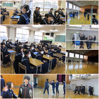 次に体育館へ行きました。バスケットボール部、バレーボール部総勢、80名以上で活気ある練習を行っていました。最後に、グランドへ行きました。ソフトボール部6名、ソフトテニス部11名の少し寂しい練習でした。