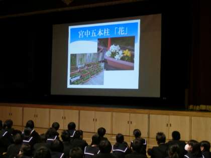 宮中五本柱『あいさつ・歌声・清掃・部活・花』の強化は、今年と来年の2年間に渡って取り組んでいる本校研究の柱の一つです。