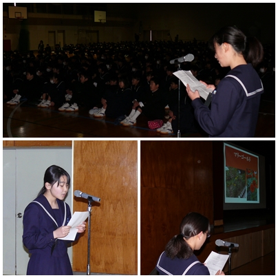 朝会の後、ボランティア委員会の皆さんが中心となって、「花いっぱい集会」を行いました。