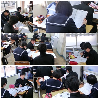 今日は、職場体験のレポートが冊子になって完成したので、一人ずつに配付しました。自分がおこなった体験とは、違う事業所のレポートも見ながら、振り返りをしました。