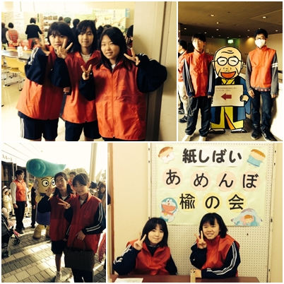江南市民文化会館で開催されている「ふくし江南ふれあいまつり」にボランティアとして本校の生徒が参加しています。