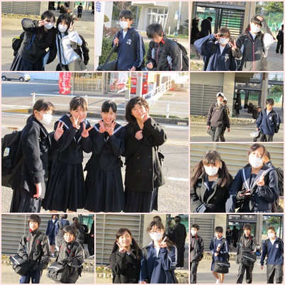 風が強く、手がちぎれそうな寒さでした。そんな中でも生徒たちは友だちと元気に帰っていきました。