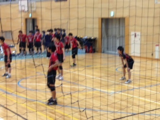 バレー男子は江南北部中で準決勝に臨んでいます。相手は江南北部中でアウェイの戦いです。