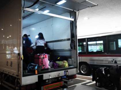 朝食前に、大きな荷物はトラックにのせ、次のホテルへ運びます☆